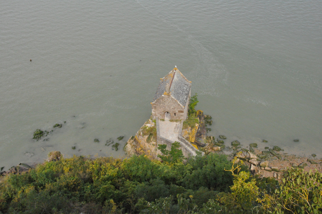 Eine kleine Kapelle tief unten am Ufer